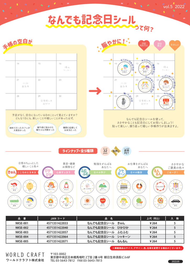 "なんでも記念日シール"は、日常にあふれるささやかなハッピーを集めたシールです。