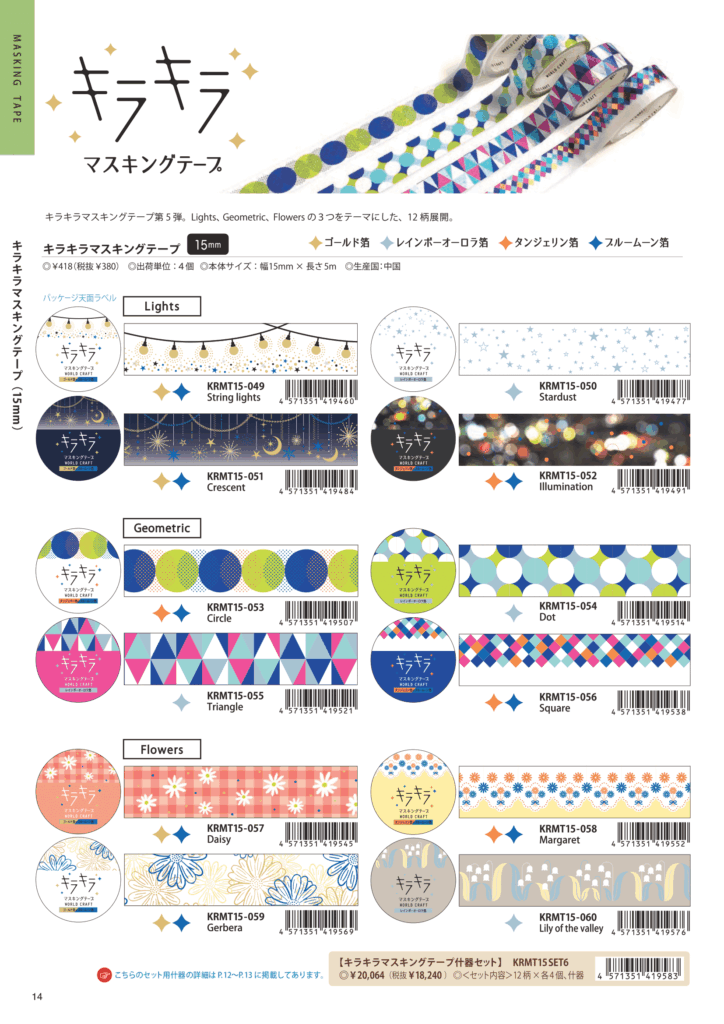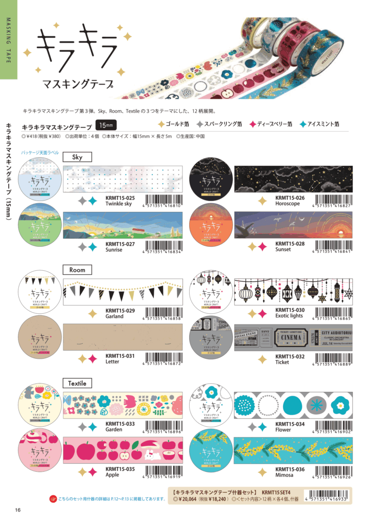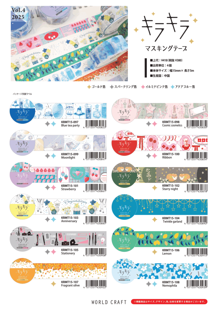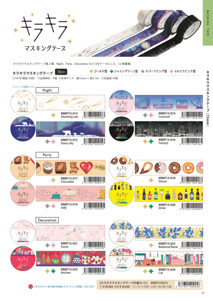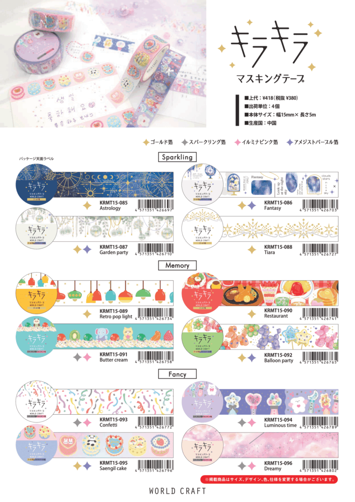華やかな箔を使用した、キラキラが可愛いマスキングテープ。