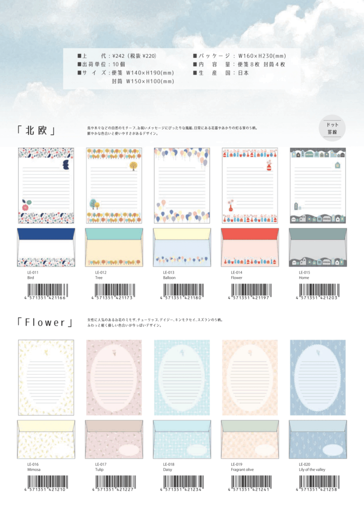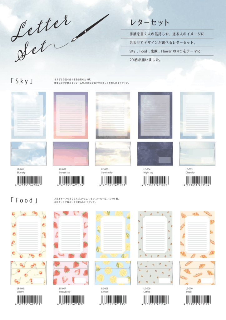 手紙を書く人の気持ちや、送る人のイメージに合わせてデザインが選べるレターセット。