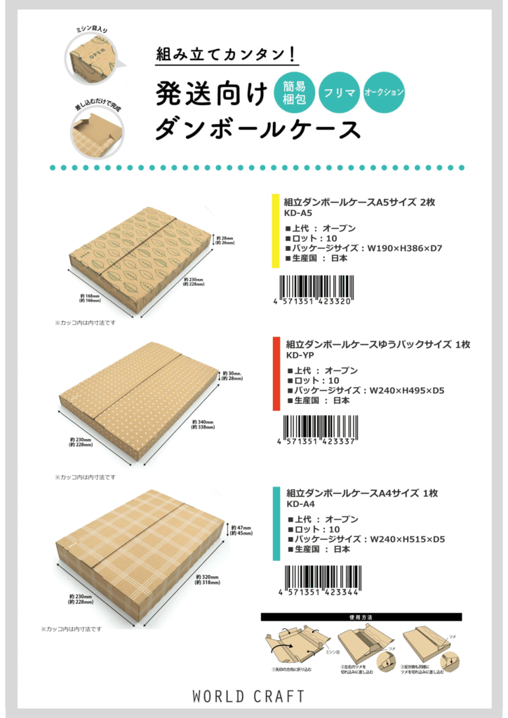 フリマやオークションに最適な、組み立てカンタンなダンボールケースです。