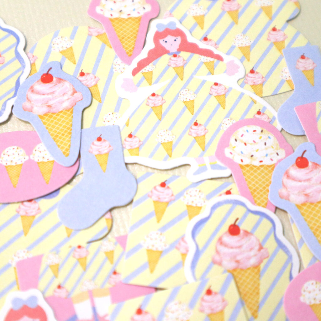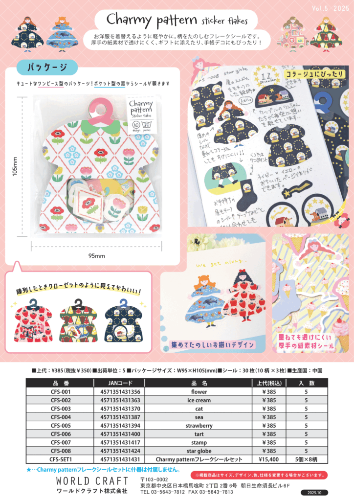 お洋服を着替えるように軽やかに。柄を楽しむフレークシールです。