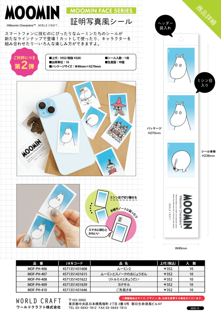 スマートフォンに挟むのにぴったりなムーミンたちのシールが登場!カットして使ったり、キャラクターを組み合わせたり…いろんな楽しみ方ができますよ。ユニークなムーミンたちと一緒に過ごしてみては?第2弾まで好評発売中です。
