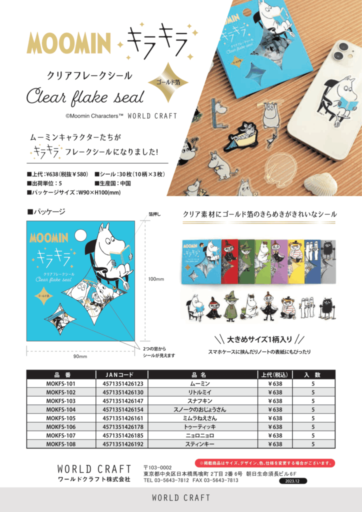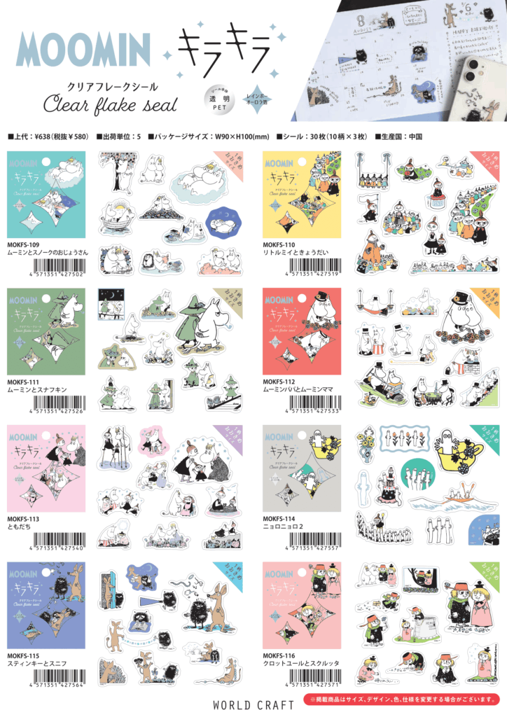 大人気『キラキラクリアフレークシール』にムーミンたちが新登場。