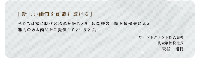 ワールドクラフト株式会社は、文房具、事務用品、事務機器、家庭雑貨、木製品の製造、輸入、製品開発、ソーシングを行っております。